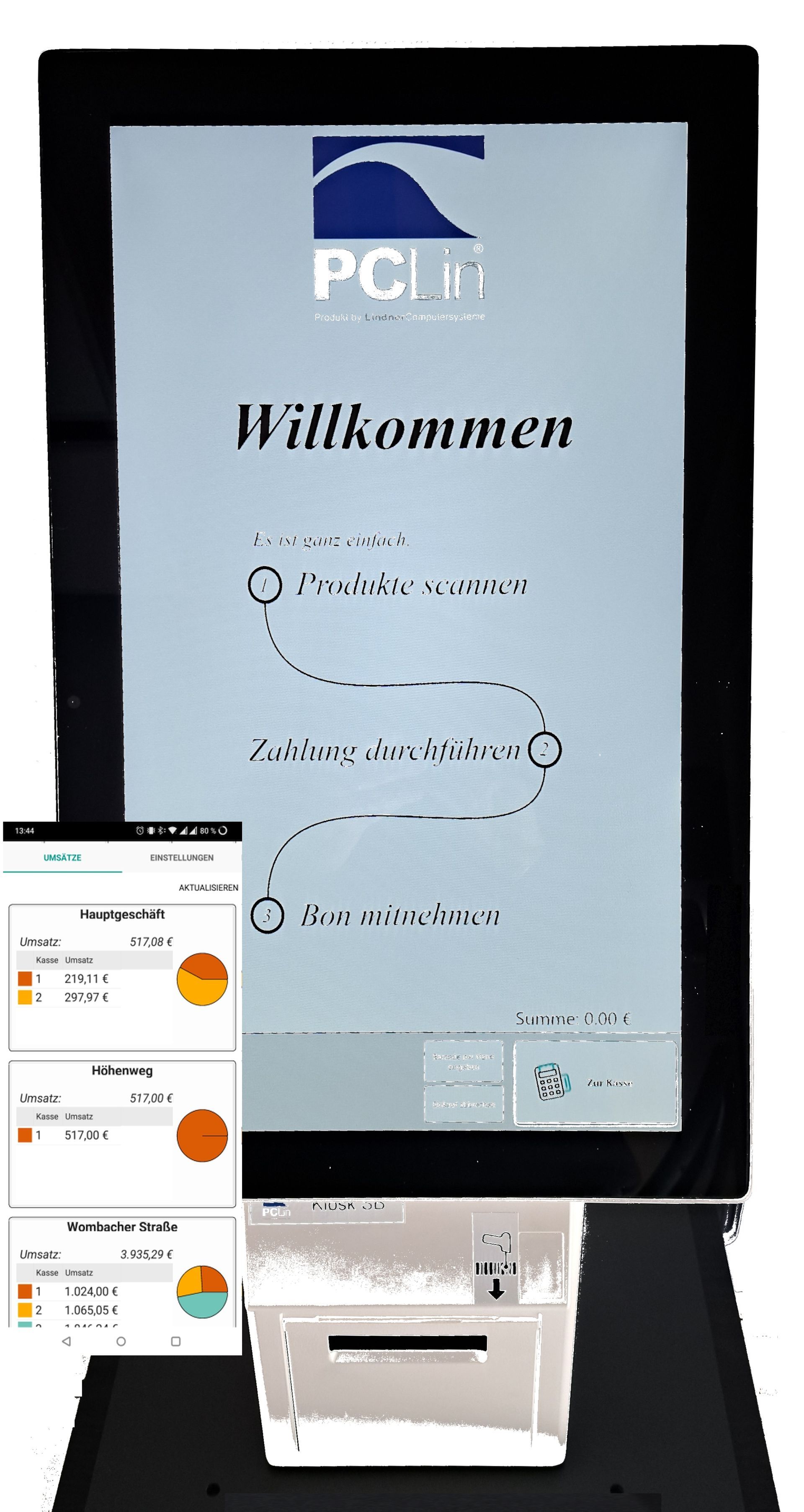 Was gestern war, war gut. Doch neue Zeiten brauchen neue Möglichkeiten. Verkaufen auch ohne Personal. Das geht. Mit der PCLin(r)-Kiosk 24/7 SB-Kasse. Produkte auswählen, wie im Supermarkt, und selbst an der Kasse scannen. Kein Problem für den Kunden ... wenn's einfach geht. Und das tut es: Mit dem PCLin(r)-Kiosk-System. PCLin(r)-Kiosk 24/7 ist Bestandteil eines Gesamtkonzeptes: Mittels unserer Auftragsbearbeitung können die Lieferungen erfasst werden. Auszeichnung und Etikettierung liefern die passenden Labels mit Barcode zum Scannen. Sie wissen, welche Waren sich im Kiosk befinden und verkauft wurden. Die Umsätze fließen artikelgenau in die Auswertung mit ein. Eine Statistik für alle ihre Läden, egal ob mit Bedienung per Ladenwaage oder ohne.